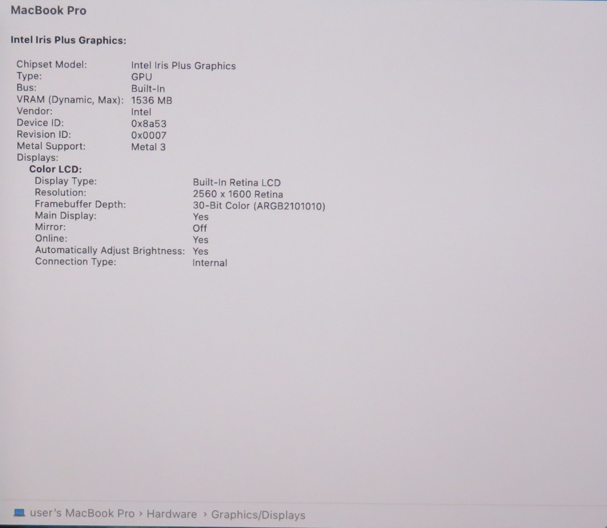Apple MacBook Pro 2020 13in Retina i7 1068NG7 2.3GHz 16GB 512GB A2251 macOS