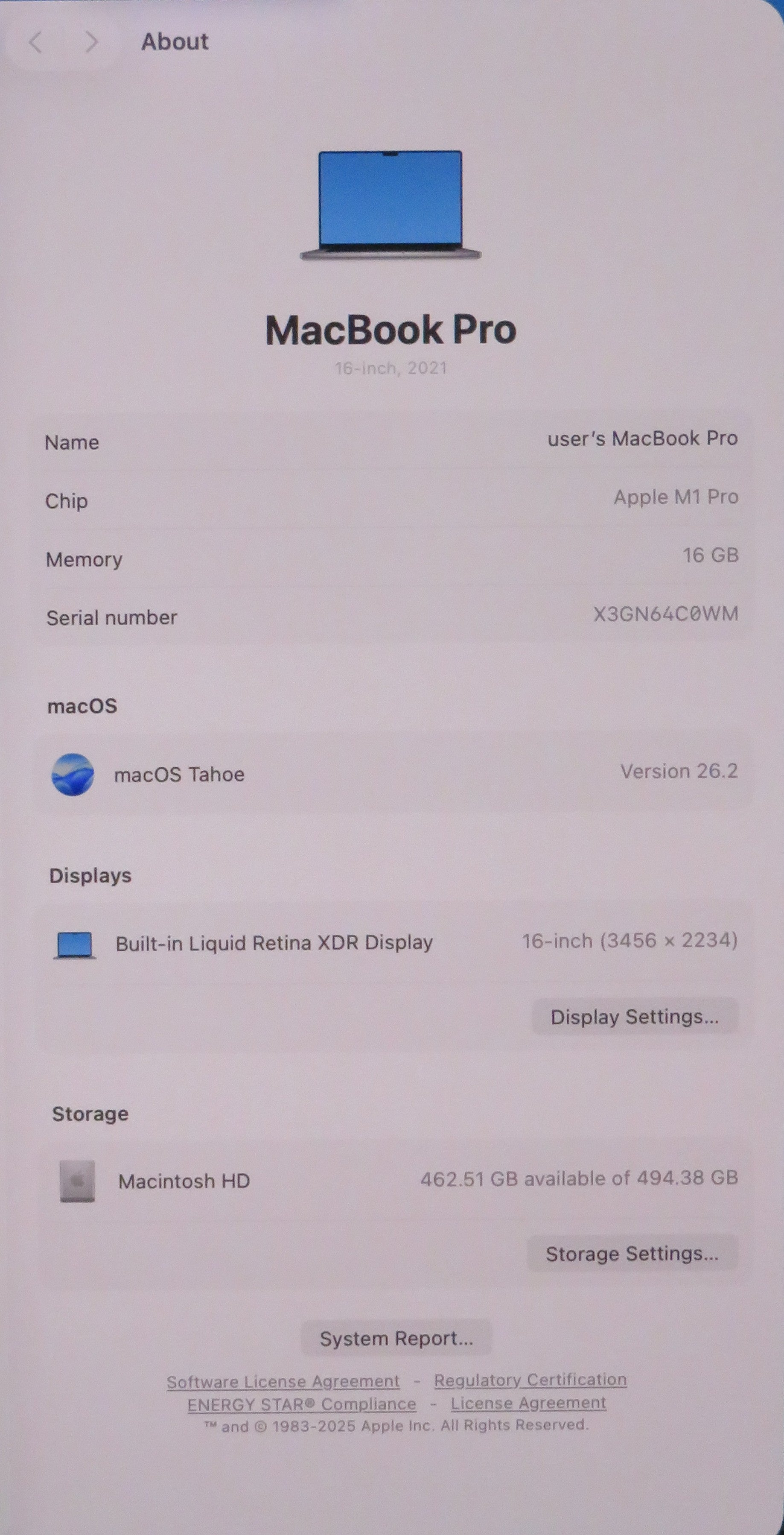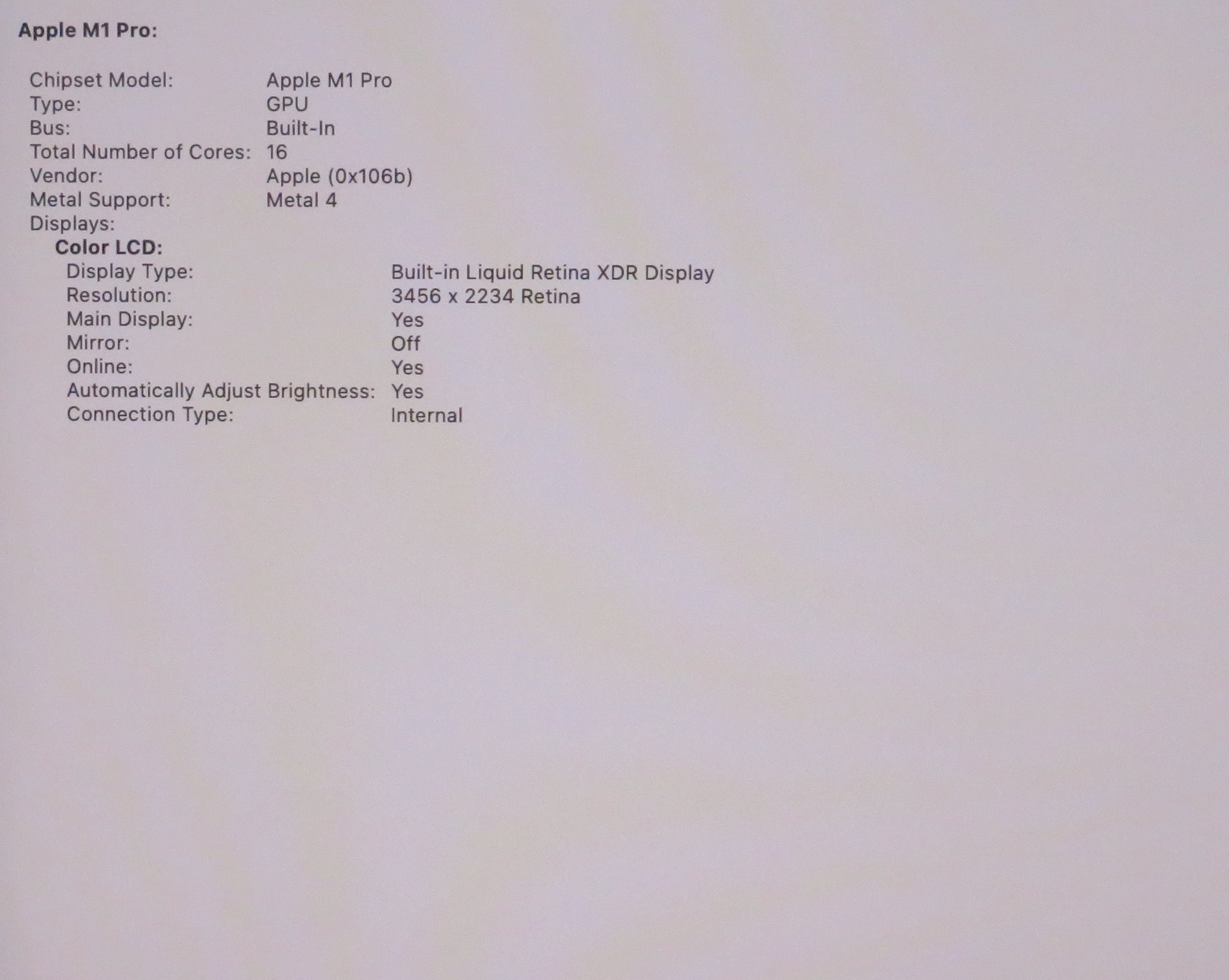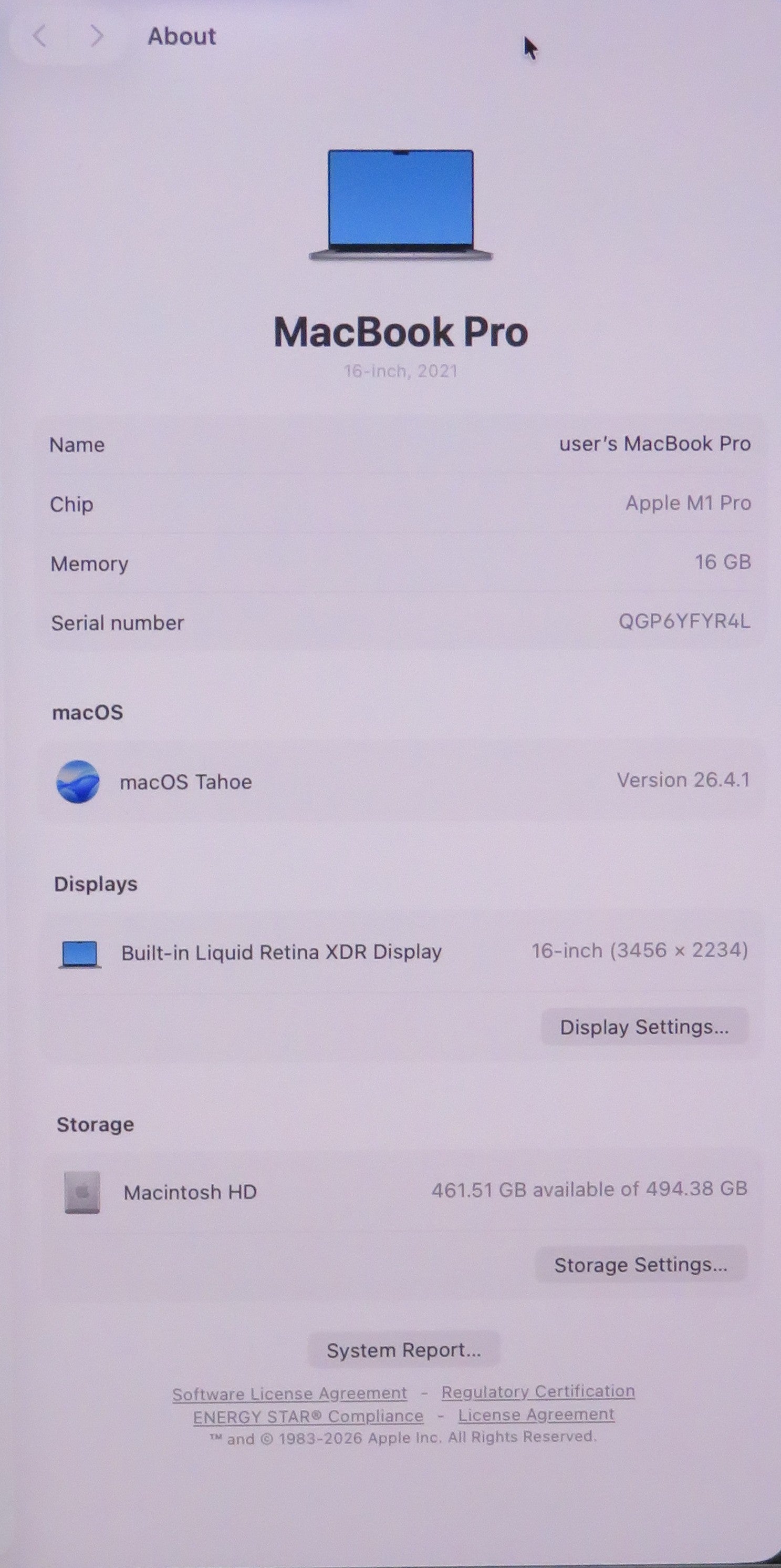 Apple Macbook Pro 2021 16in Retina XDR M1 Pro 16GB RAM 512GB macOS A2485