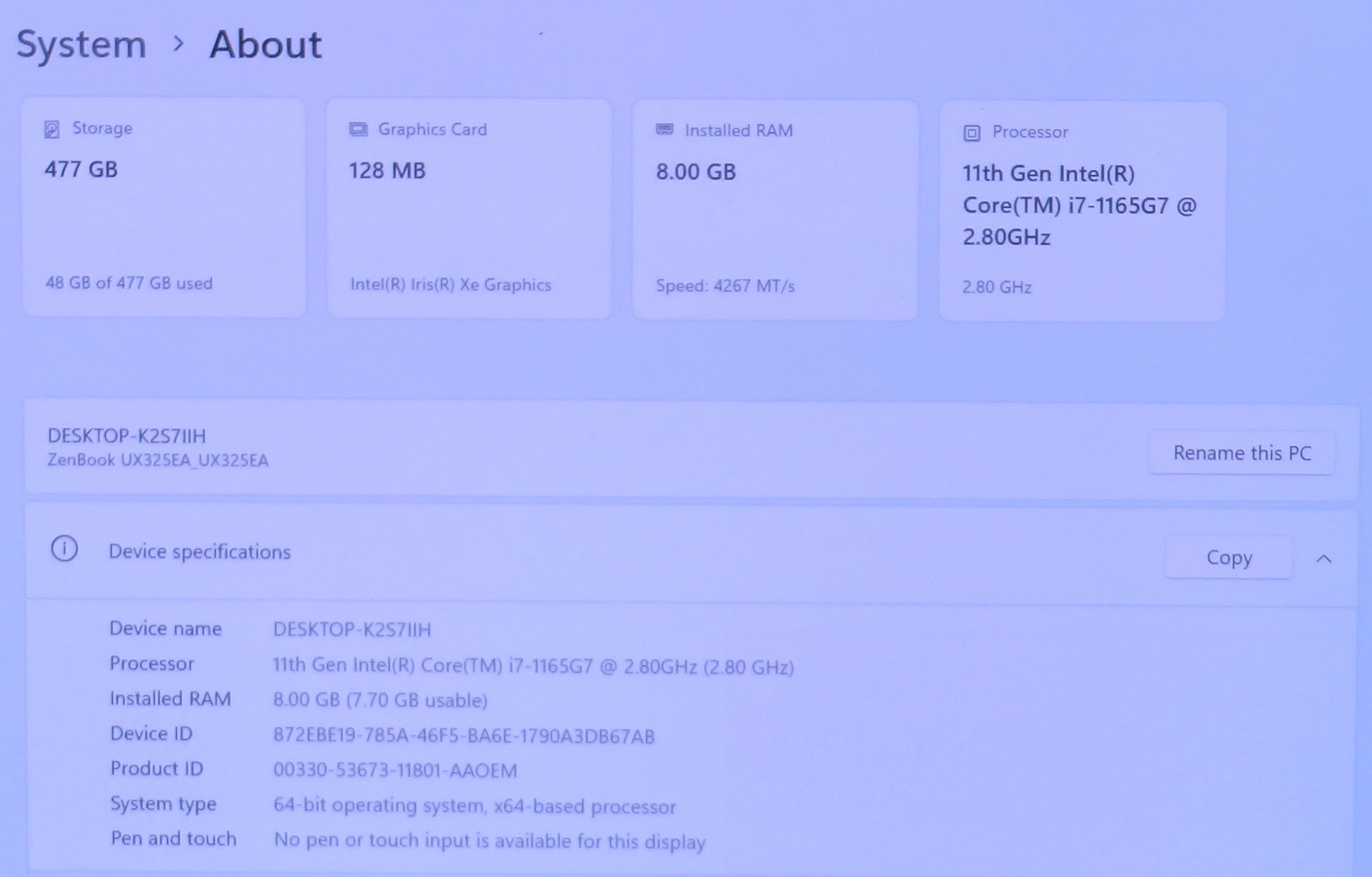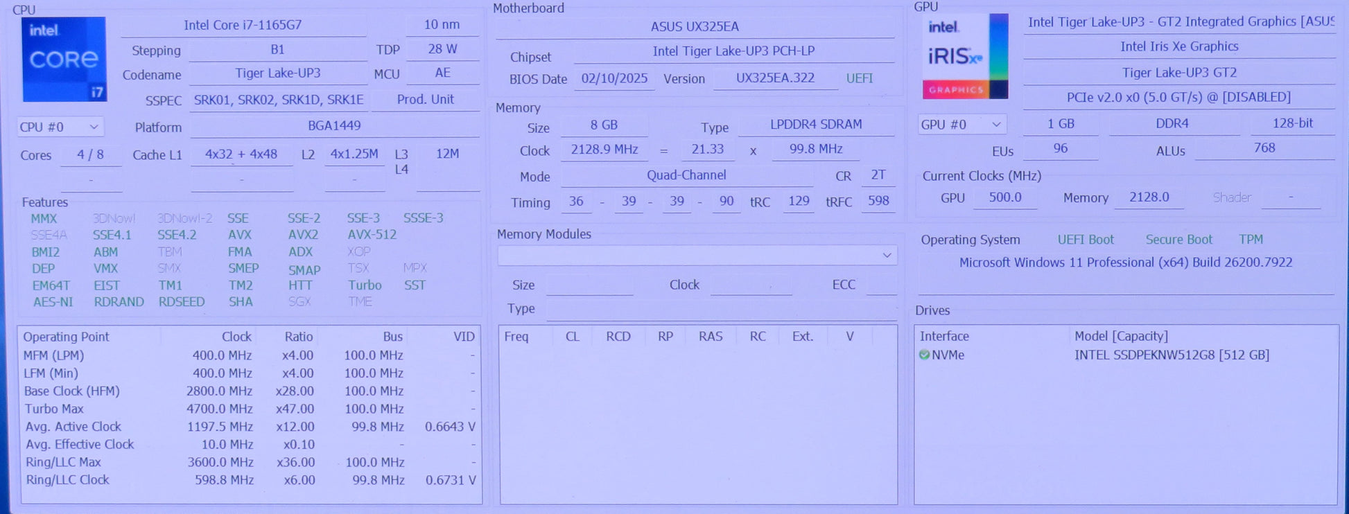 ASUS Zenbook 13 UX325E 13in i7 1165G7 2.8GHz 8GB RAM 512GB W11 H