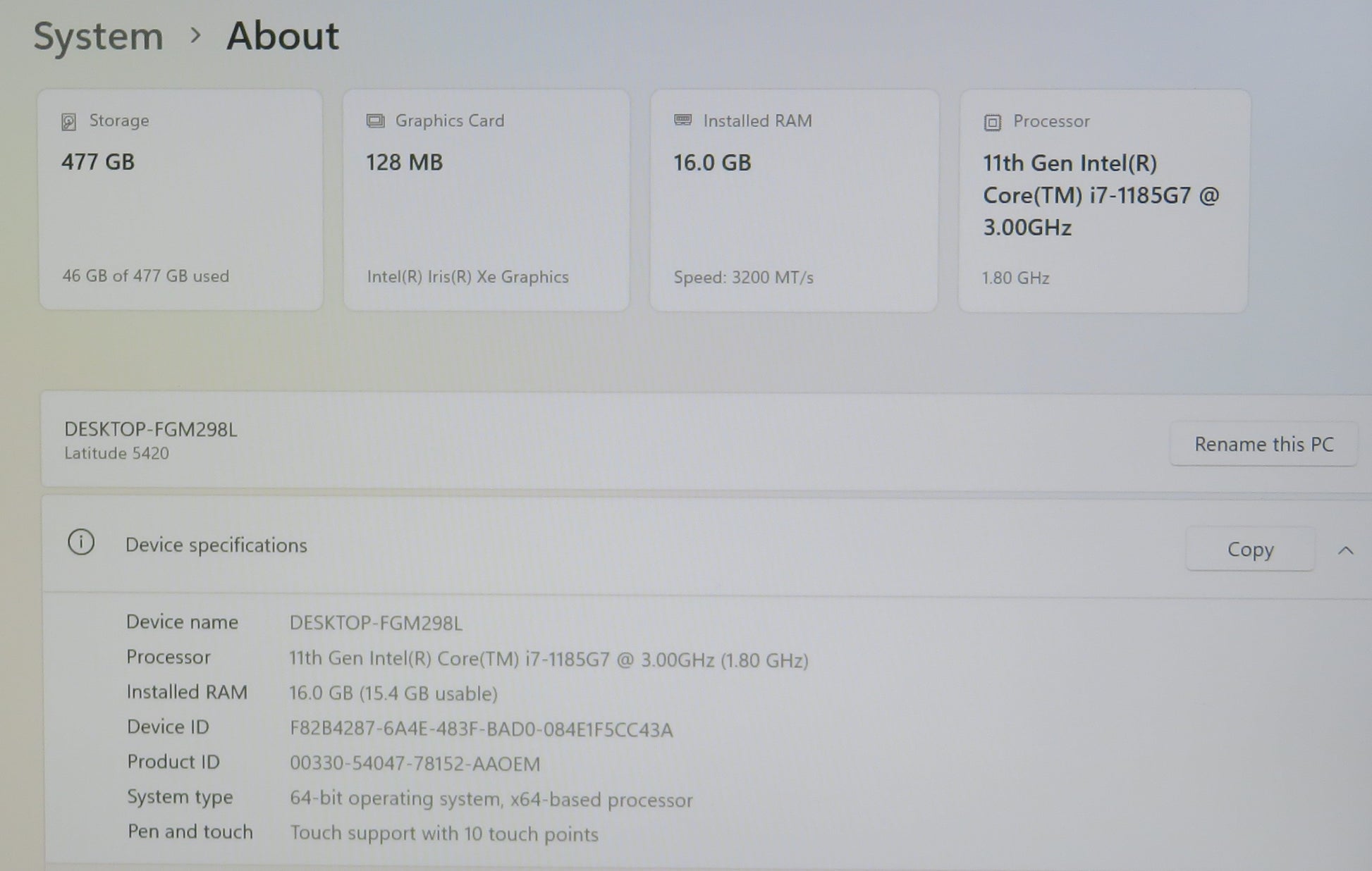 Dell Latitude 5420 14in Touchscreen i7 1185G7U 3.0GHz 16GB RAM 512GB Win11 Pro