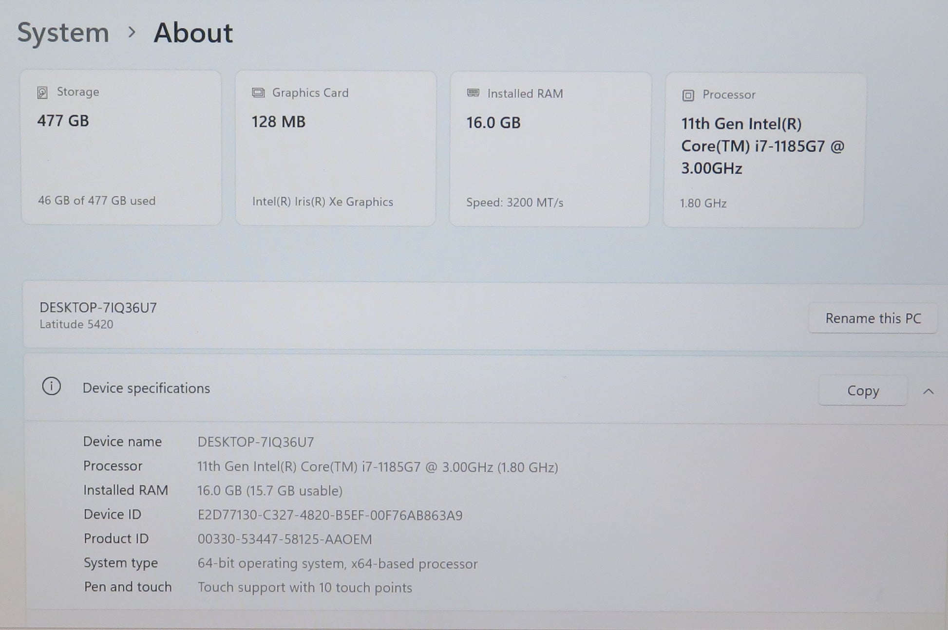 Dell Latitude 5420 14in Touchscreen i7 1185G7U 3.0GHz 16GB RAM 512GB Win11 Pro