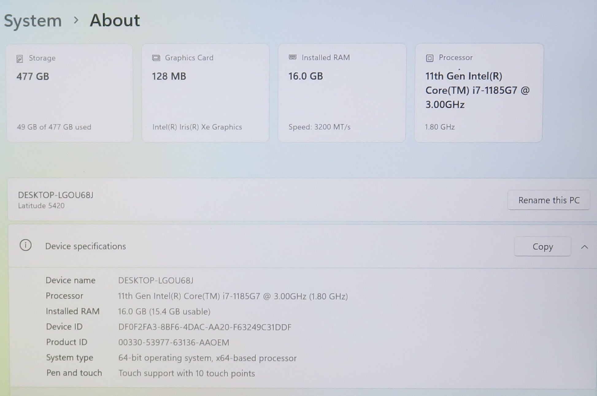 Dell Latitude 5420 14in Touchscreen i7 1185G7U 3.0GHz 16GB RAM 512GB Win11 Pro