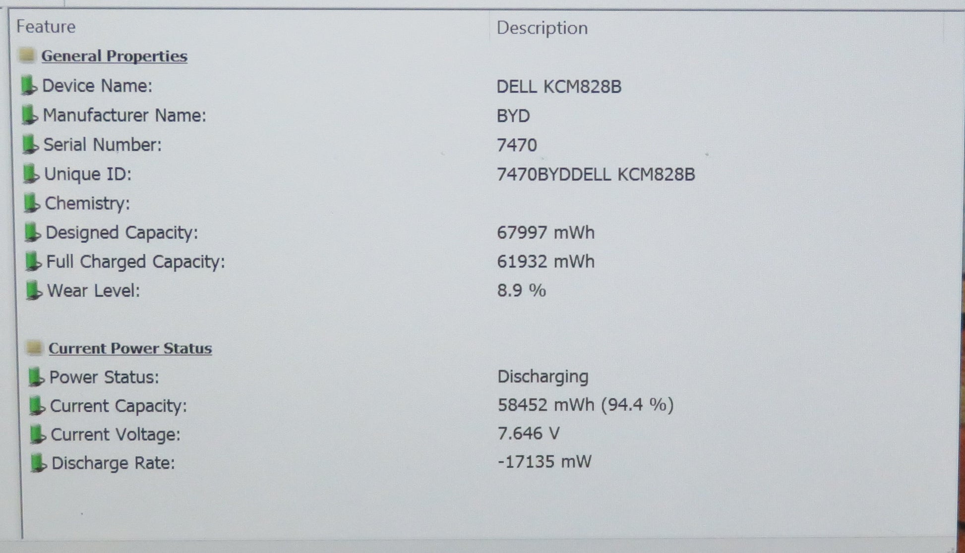 Unit is in Very Good Condition with signs of wear. Battery Health is excellent. Screen scratches seen in photos. All ports are tested and functional. Dell Charger included. C5(Used Very Good) F4(Hardware Functional)