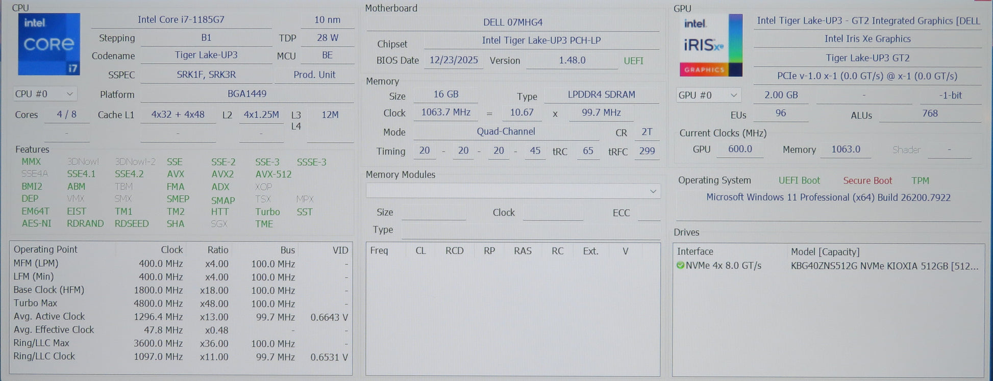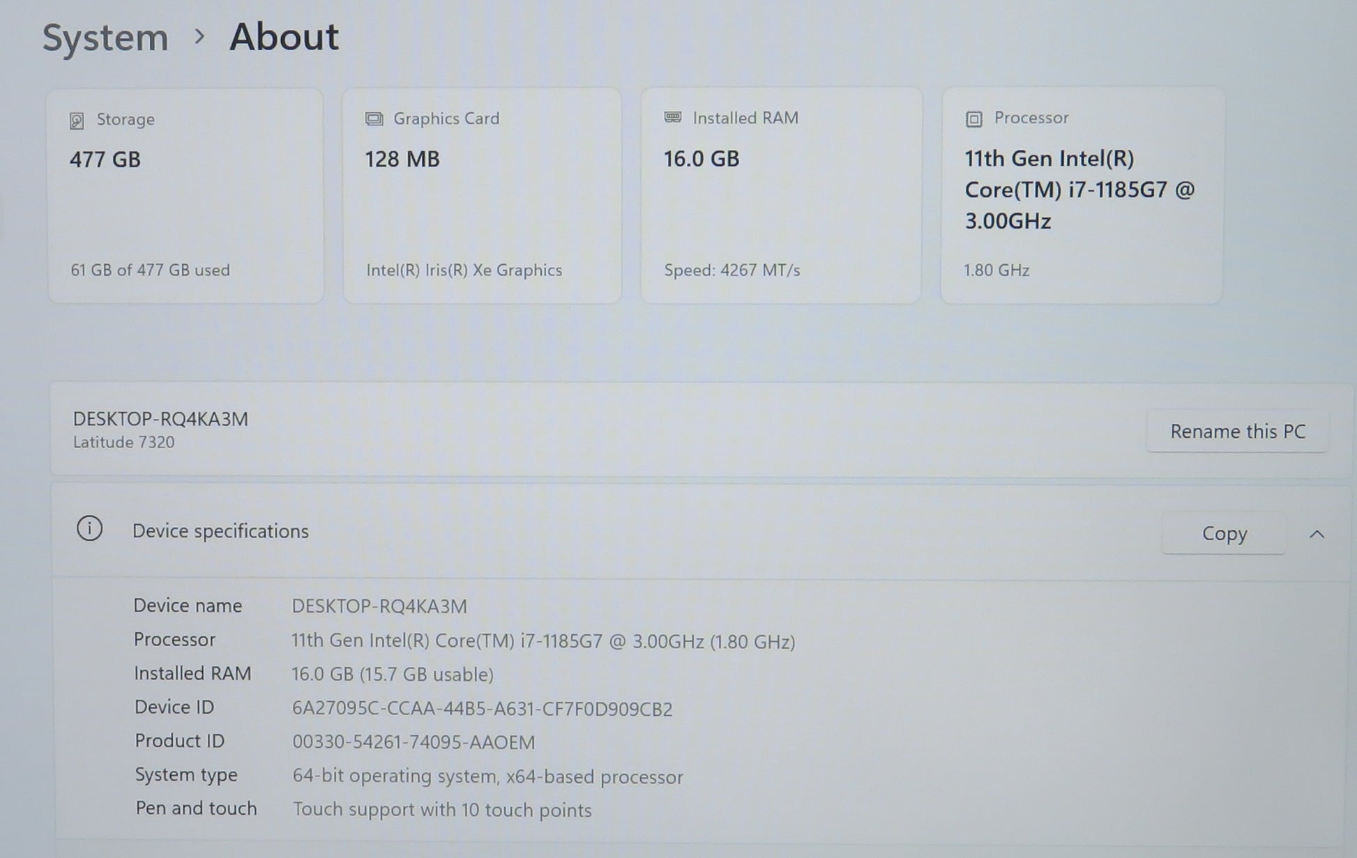 Dell Latitude 7320 13in Touchscreen i7-1185G7 3.0GHz 16GB 512GB Win 11