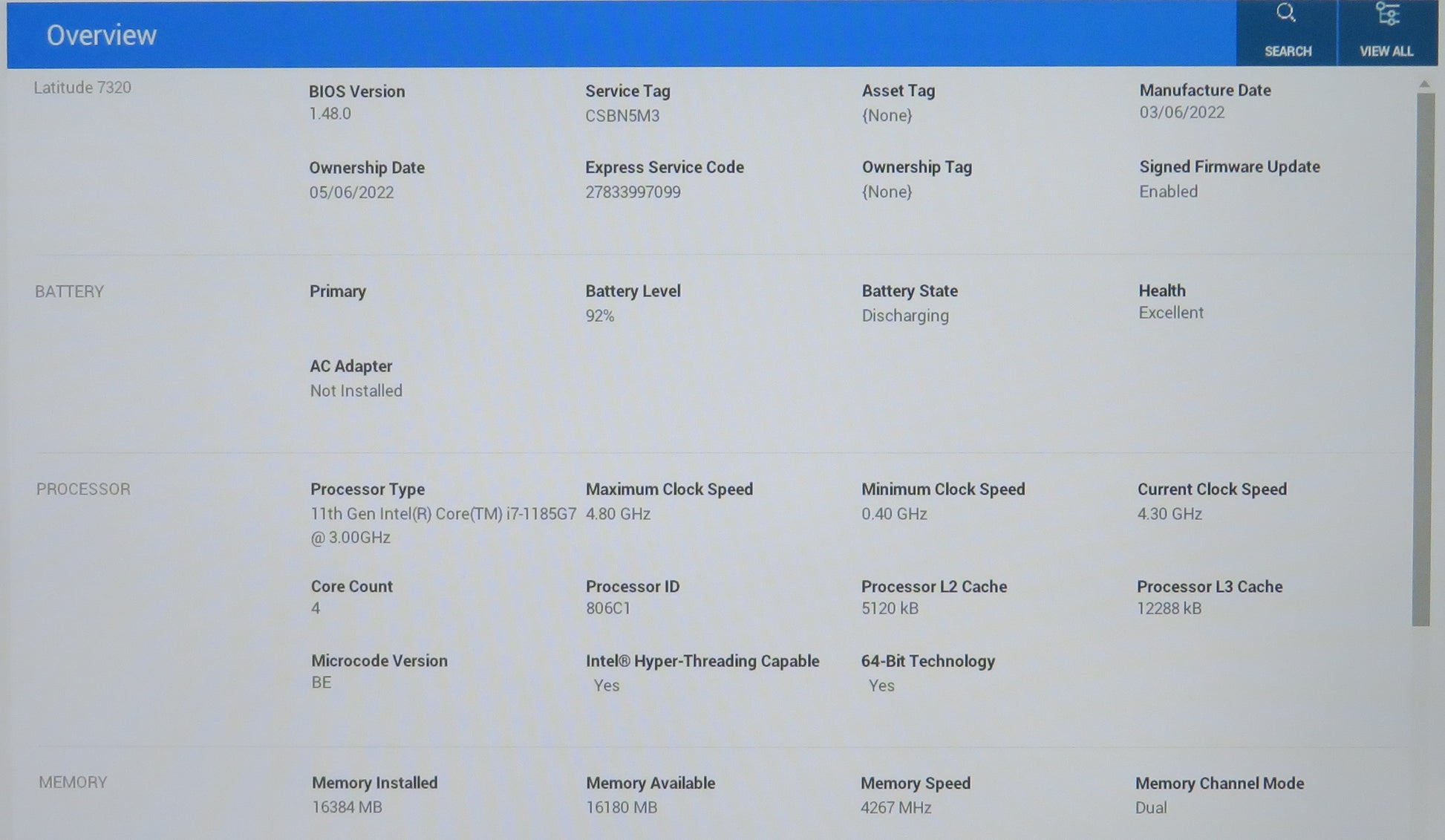 Unit is in Very Good Condition with signs of scratches and wear. Battery Health is excellent. Screen is in excellent condition. All ports are tested and functional. Dell 65w USB-C Charger included. C5(Used Very Good) F4(Hardware Functional)