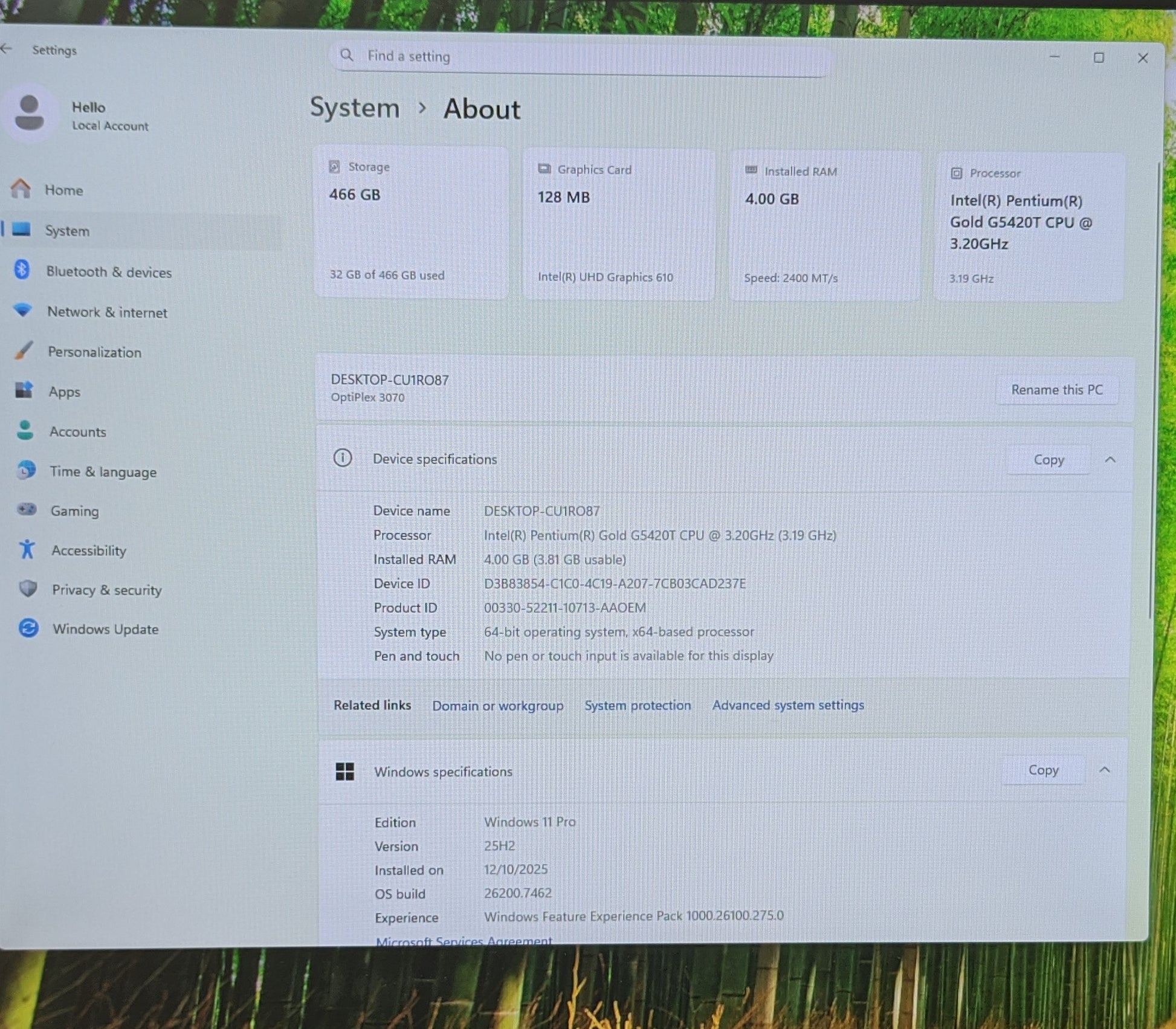 DELL OPTIPLEX 3070 MICRO DESKTOP PG-G5420T 4GB 500GB