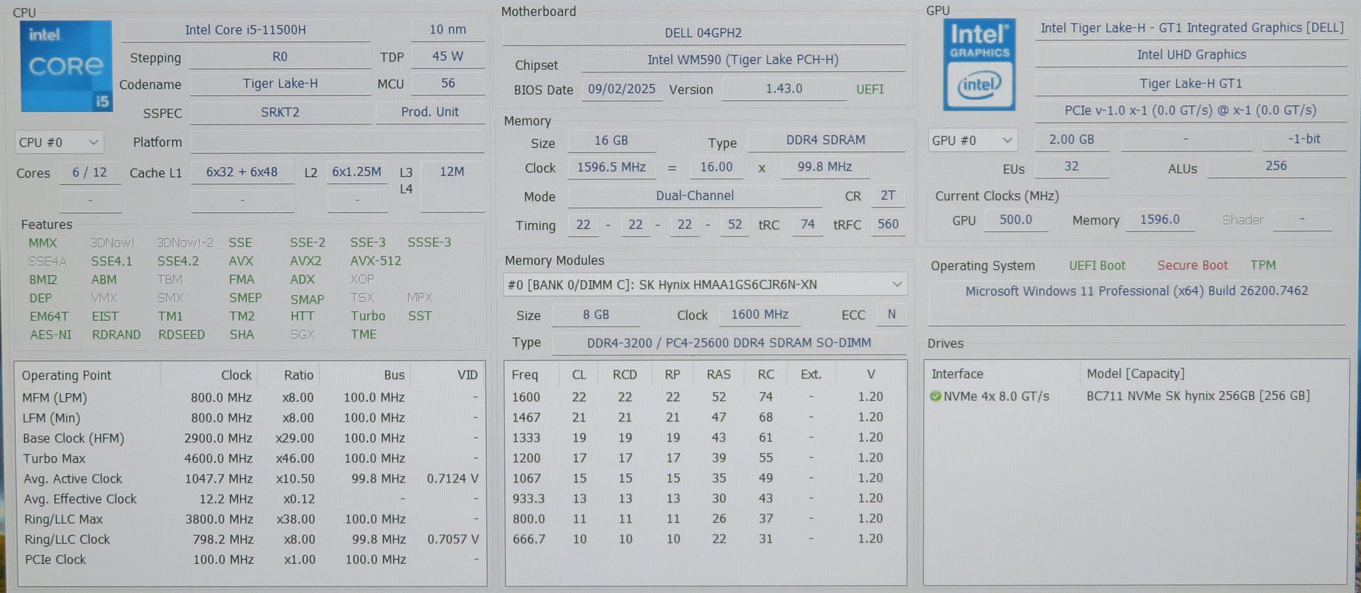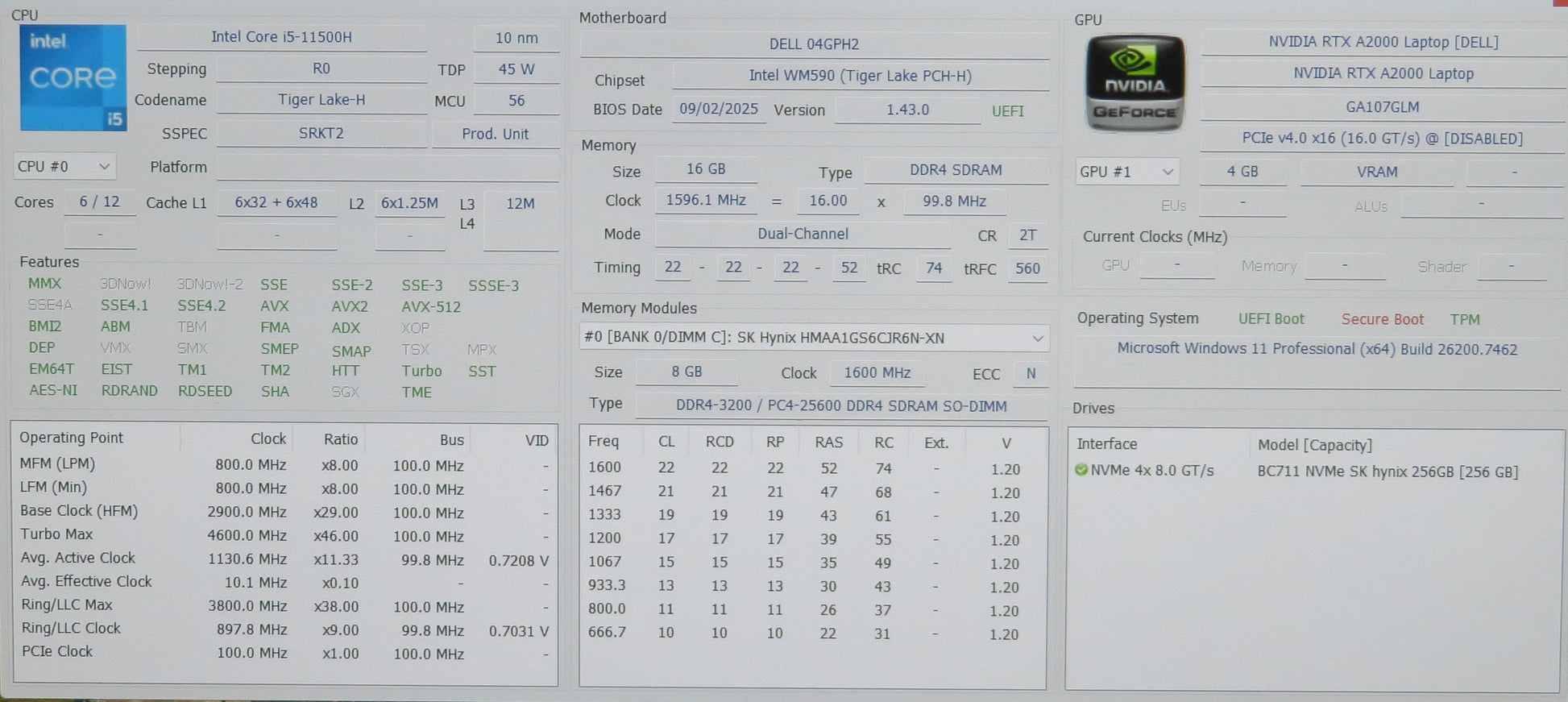 Dell Precision 7560 15in i5 11500H 2.9GHz 16GB RAM 256GB Win 11 Pro RTX A2000