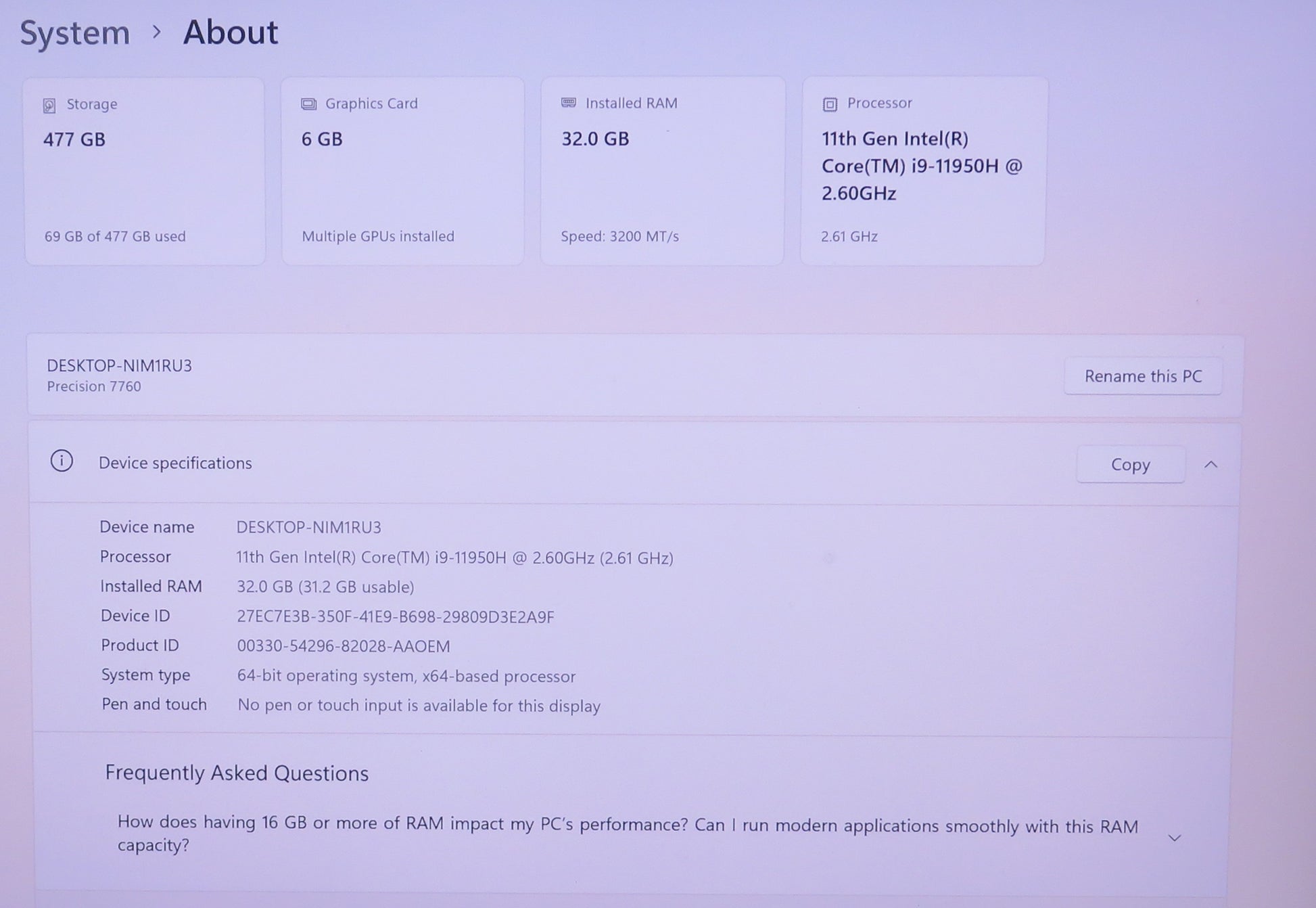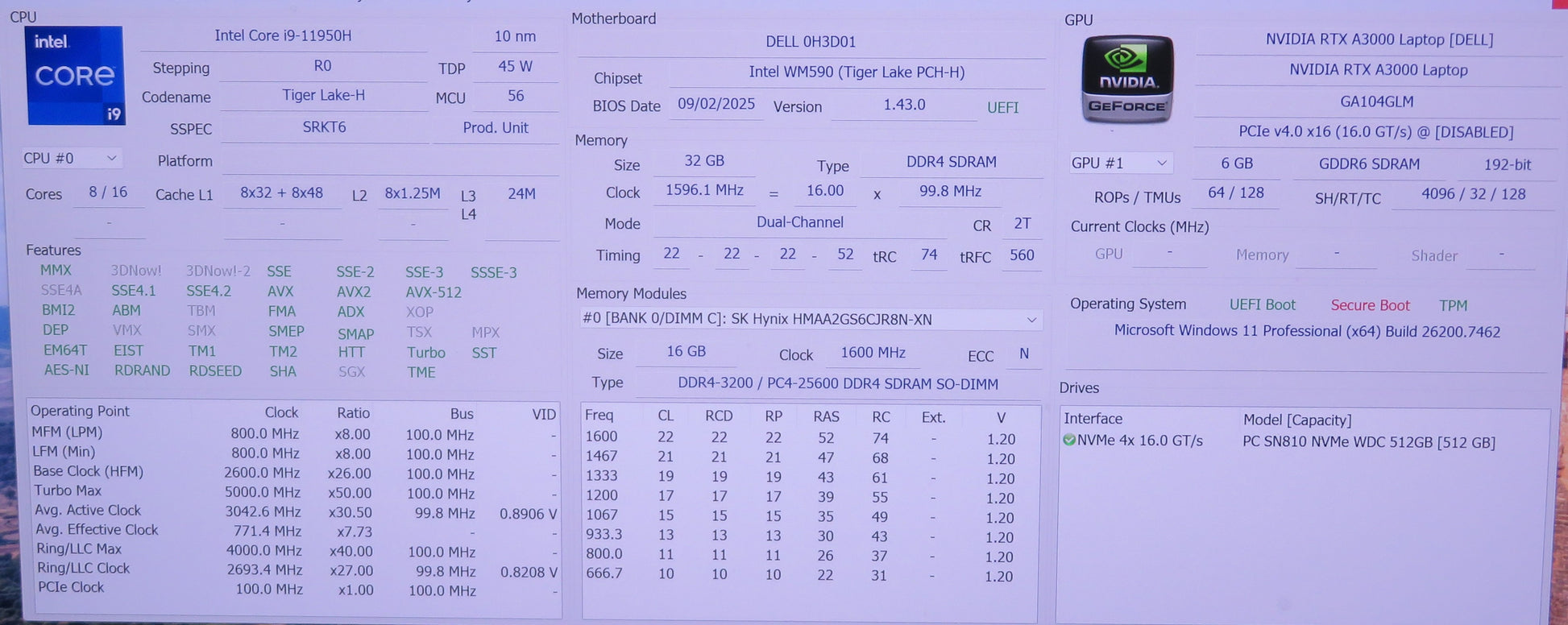 Dell Precision 7760 17in 4K i9 11950H 2.6GHz 32GB RAM 512GB Win 11 Pro RTX A3000