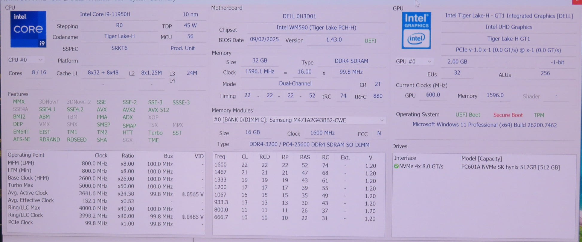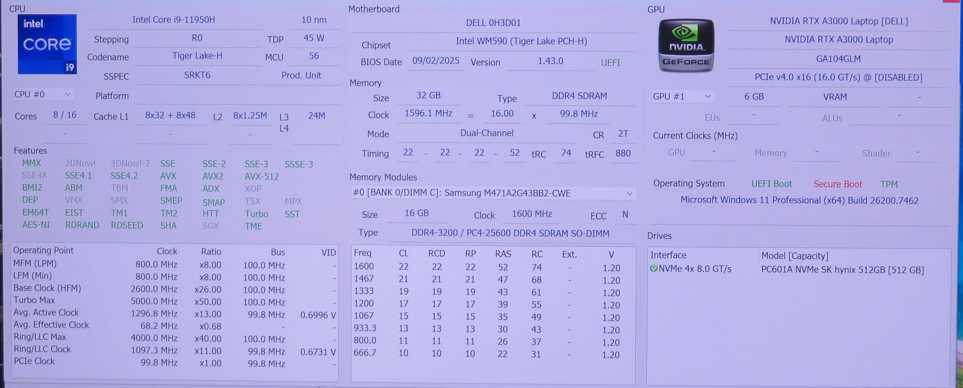 Dell Precision 7760 17in i9 11950H 2.6GHz 32GB RAM 512GB Win 11 Pro RTX A3000