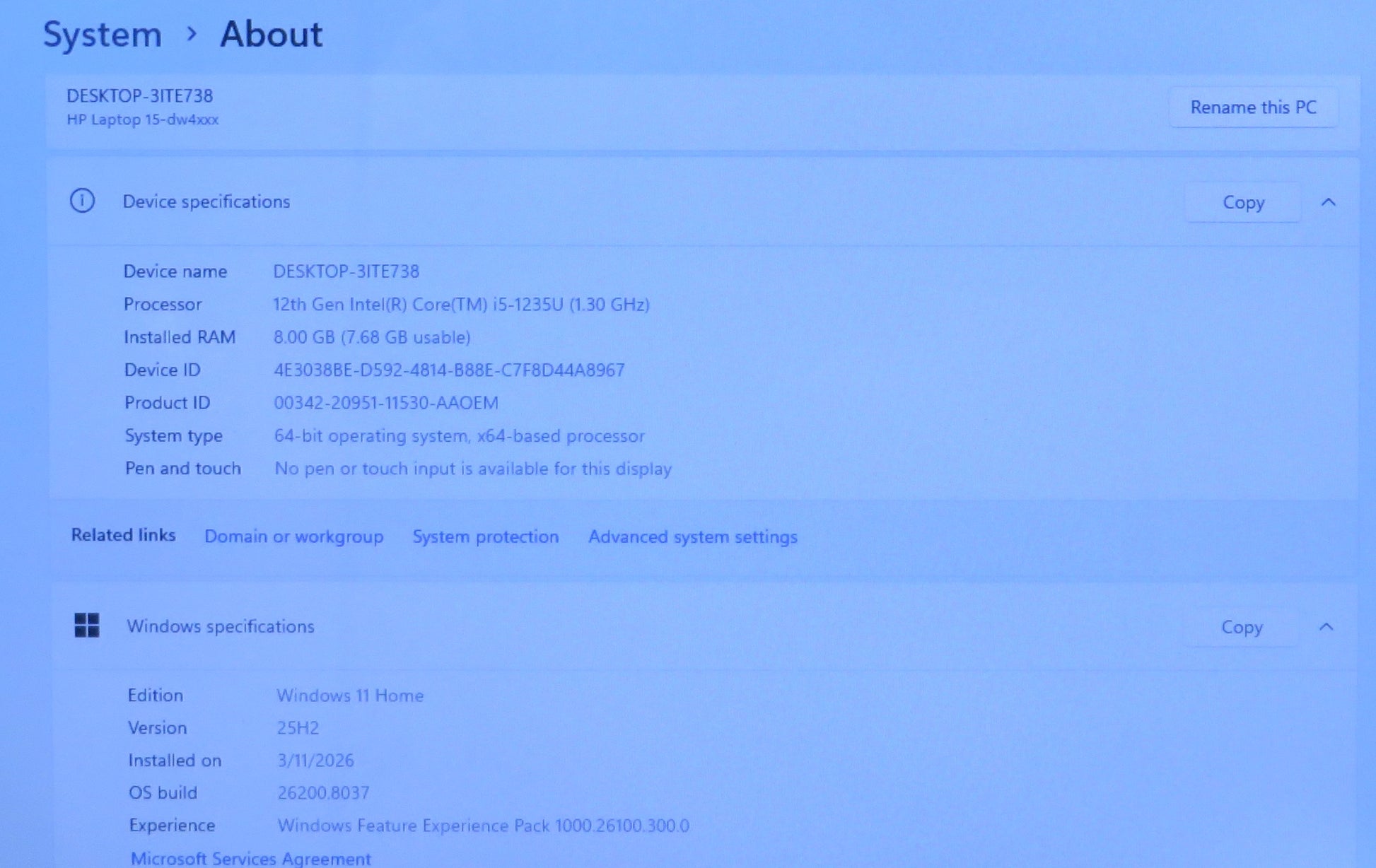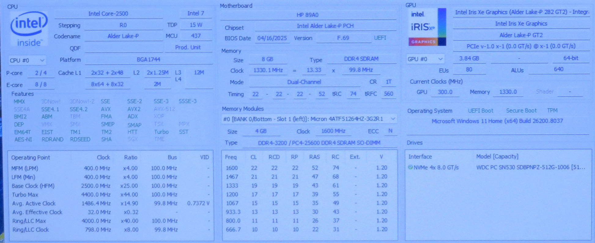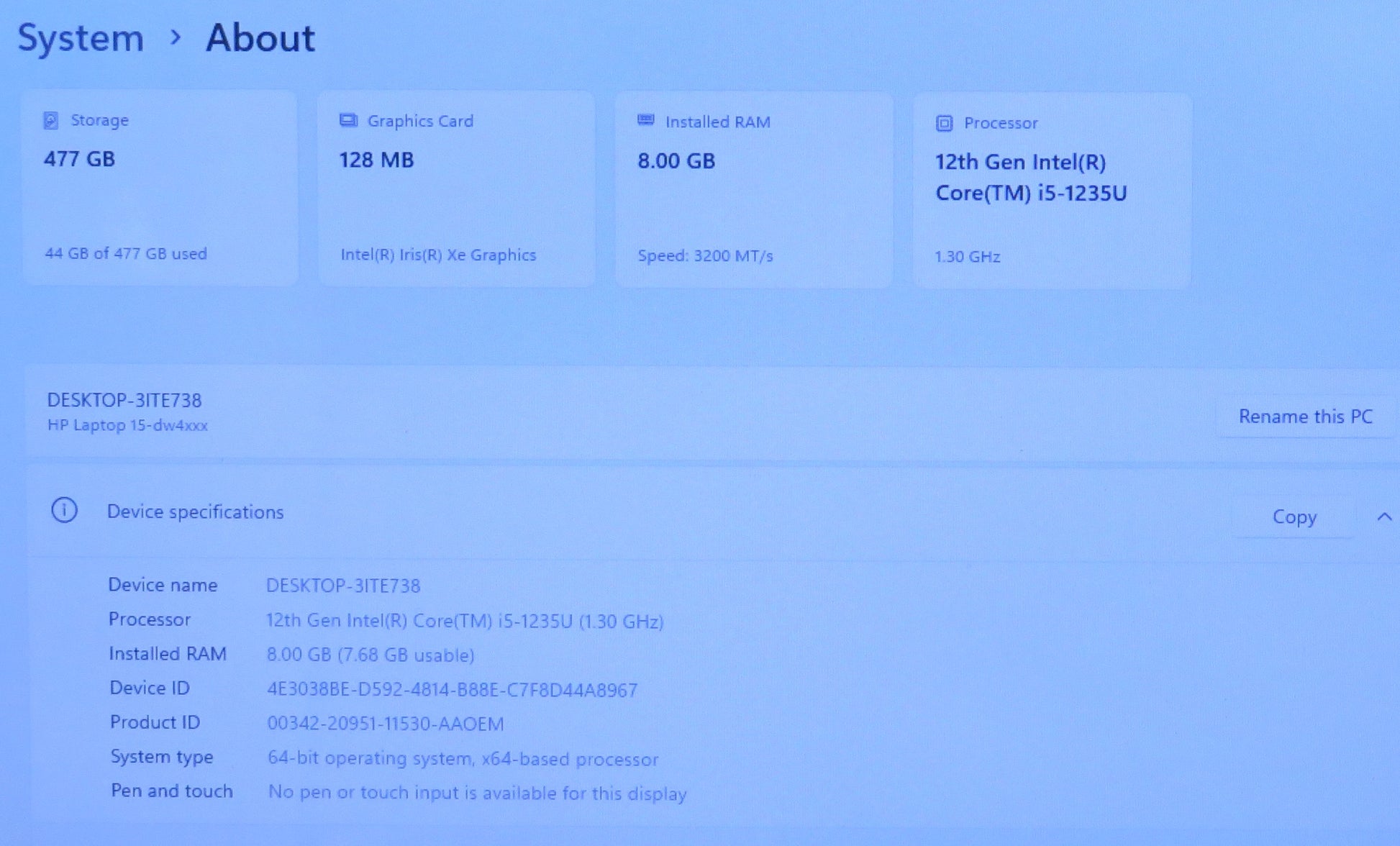 HP 15.6in 15-DW4725OD i5 1235U 1.3GHz 8GB RAM 512GB Win11 Home