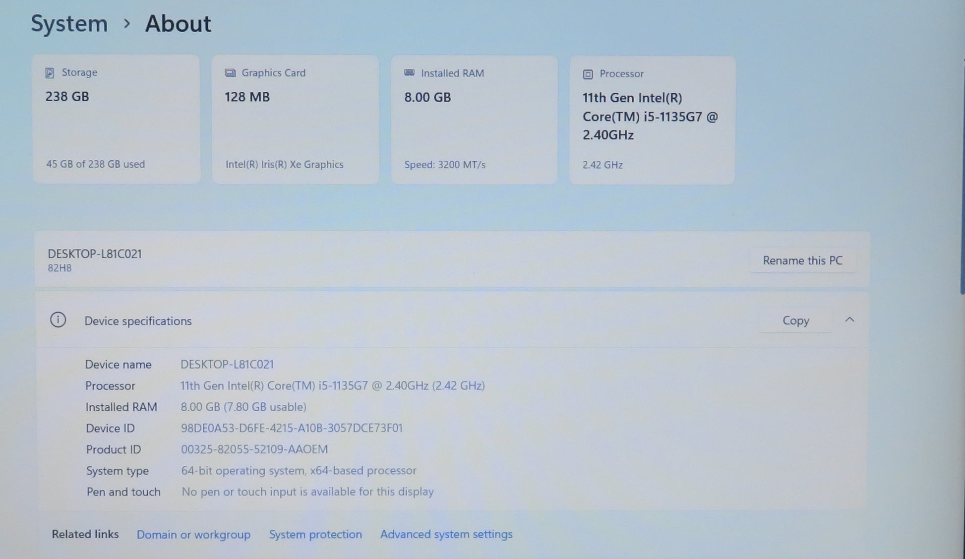 Lenovo IdeaPad 3 15.6in FHD 15ITL6 i3 1135G7 2.4GHz 8GB RAM 256GB Win11